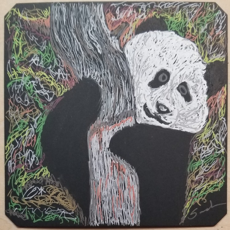 Two Pandas Okay, it is the same panda, but one way done on a black tile with Sakura Gel Pen and the other was done on a white tile using Tombow Mono “graphite” pencils. Share this: Click to share on X (Opens in new window) X Click to share on Facebook (Opens in new window) Facebook Like Loading...