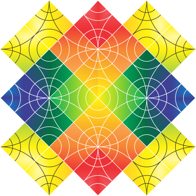 At first, I did not know what I was going to do with it, so it went uncolored for a few days. Then I had the idea to use the primary colors to color the squares; Yellow (for the center squares), Red (for the top and bottom squares), and Blue (for the left and right squares). As the blocks overlapped each other, the secondary colors would appear; Orange, Green, and Purple. I changed the line color from black to white, so it would show up better. The Color Block drawing: