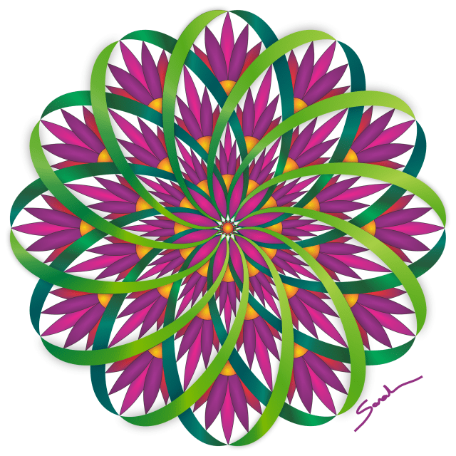 This drawing used the line drawing I created for In Shades of Red and I added designs to the spacing between the green swirls.